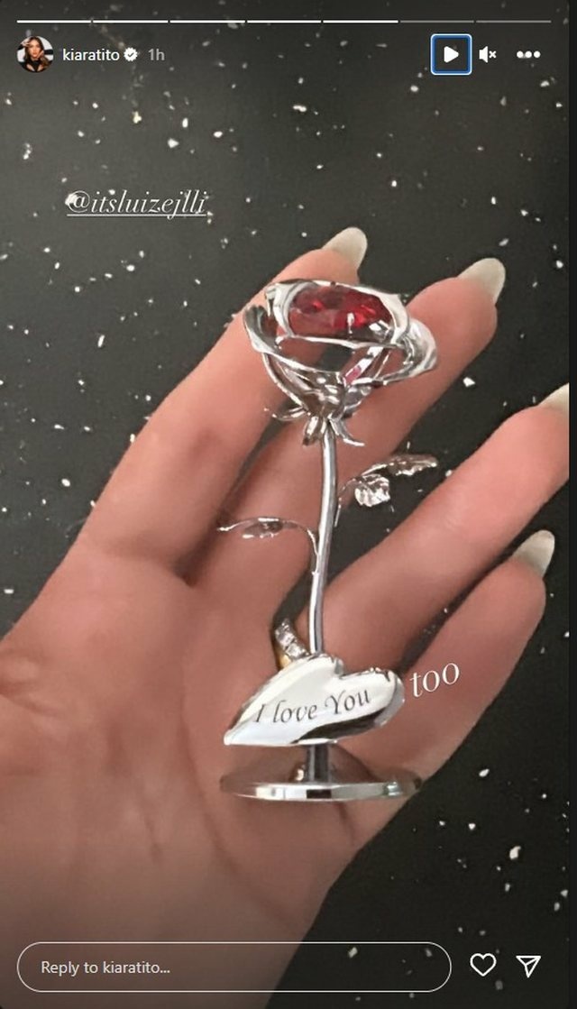 Mirëpo, ajo që ka bërë më shumë përshtypje ishte një aksesori në formën e trëndailit që Kiara ka postuar, duke bërë ‘tag’ Luizin. Në trëndafil ishte e gdhendur fjala ‘I love you’.