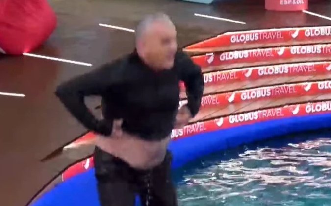 Si fitues i “bastit”, Artani e mbajti premtimin e tij dhe u hodh live në pishinë, duke shkaktuar habi dhe të qeshura tek banorët e tjerë.