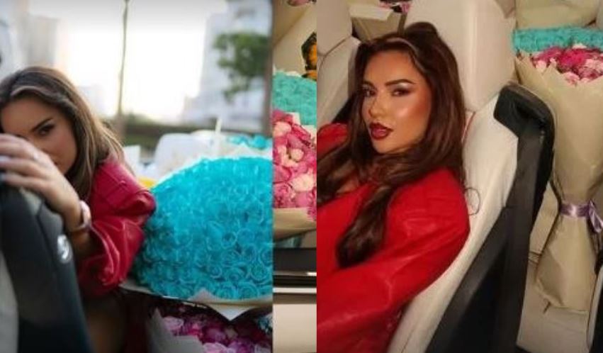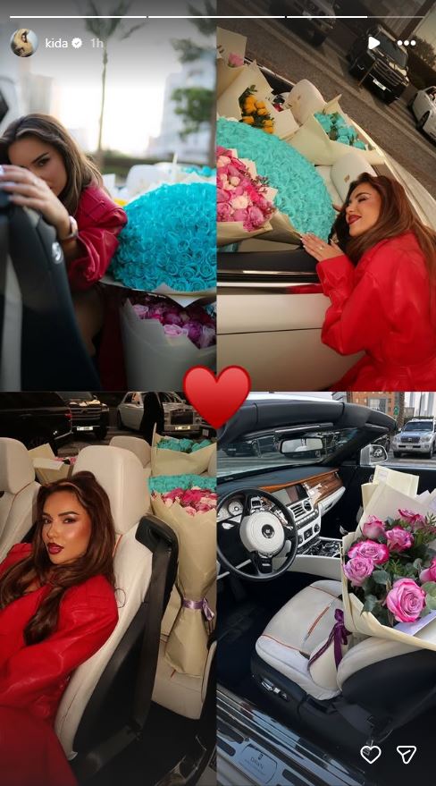 Në InstaStory, shihet se vetura e saj është mbushur plot me lule, të cilat duket se i ka pranuar për 8 Mars.
