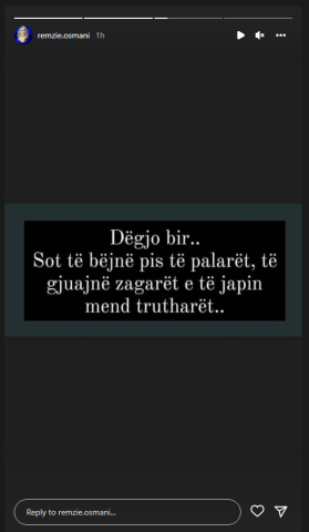 Ndërkaq, menjëherë pas kësaj, Remzia reagoi duke publikuar në “Instastory” një thënie.