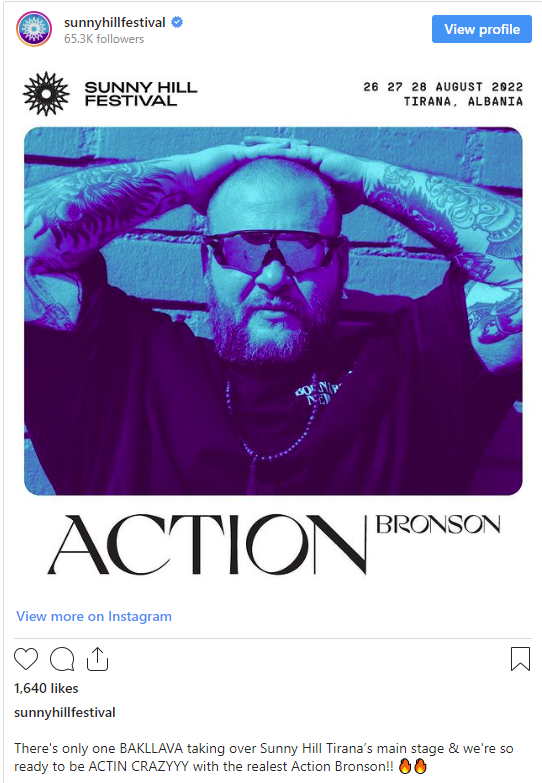 Artisti me prejardhje shqiptare, Action Bronson, u bë e ditur se do të jetë pjesë e festivalit “Sunny Hill”, që do të mbahet në Tiranë.