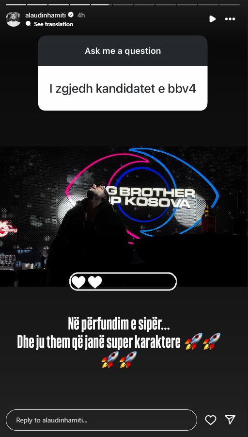 Moderatori i Big Brother VIP Kosova, Alaudin Hamiti sot në Instagramin e tij është pyetur nga ndjekësit për banorët e edicionit të katërt të këtij formati.