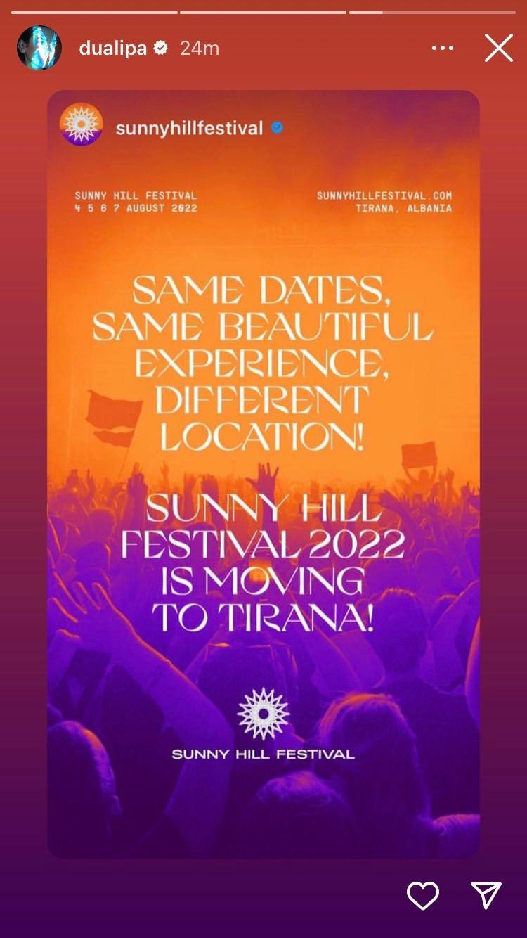Ajo në instastory ka bërë të ditur njoftimin për zhvendosjen e këtij festivali në Tiranë.