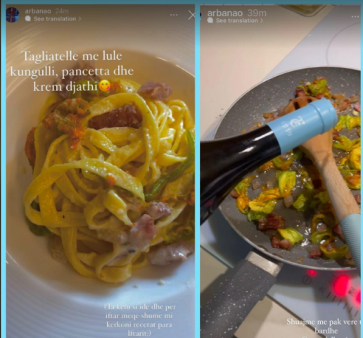 Së fundmi ajo për iftar ka sugjeruar tagliatelle me lule kungulli, pancetta dhe krem djathi.