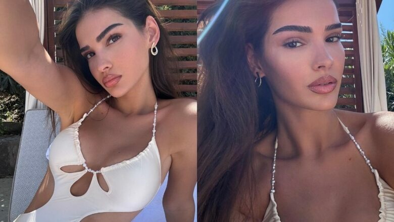 Bukuroshja është e veshur me bikini njëpjesëshe, që i thekson më shumë bukurinë natyrale dhe trupin e saj të tonifikuar.