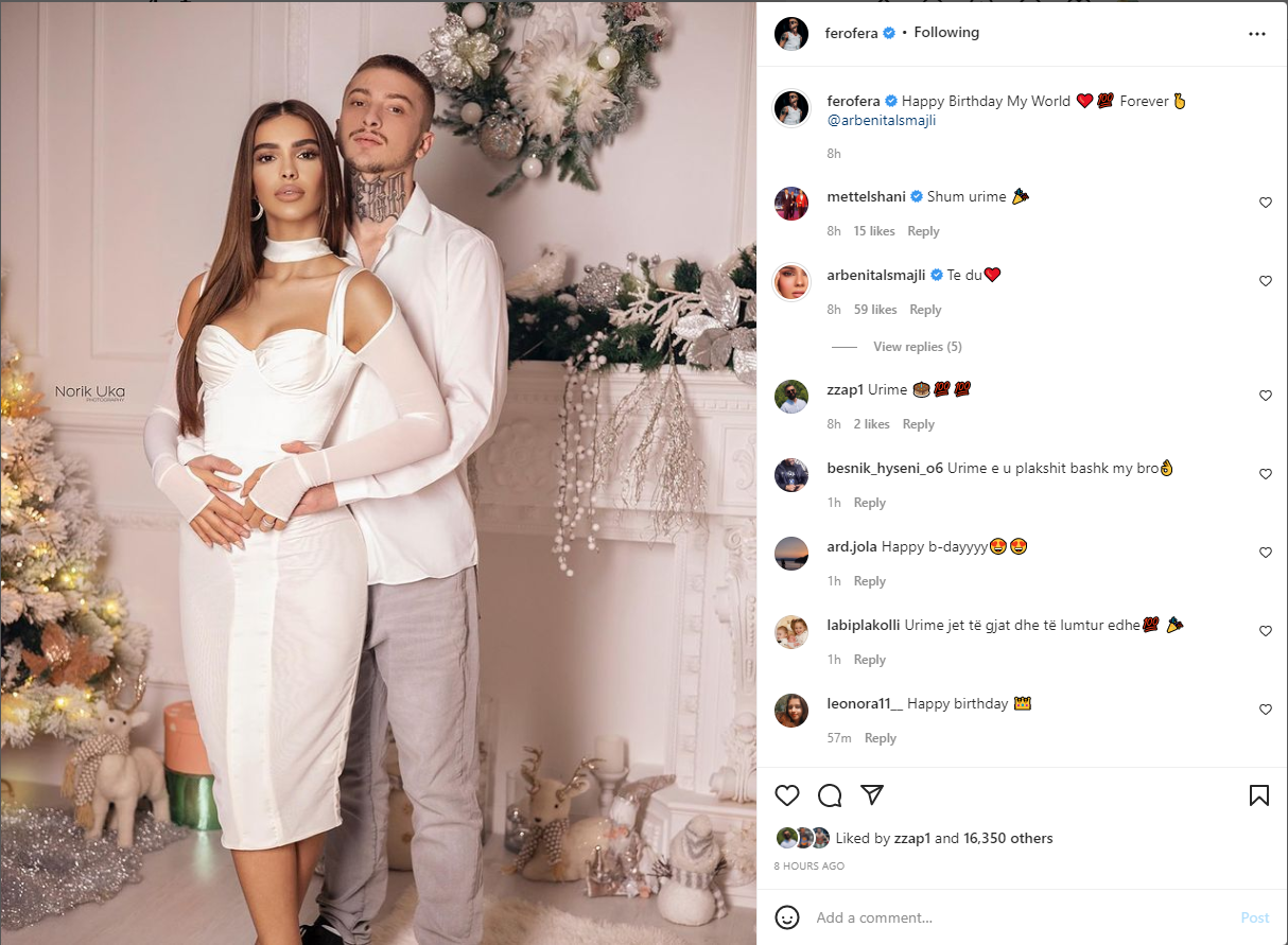 “Urime ditëlindja bota ime, përgjithmonë”, ka shkruar Fero.