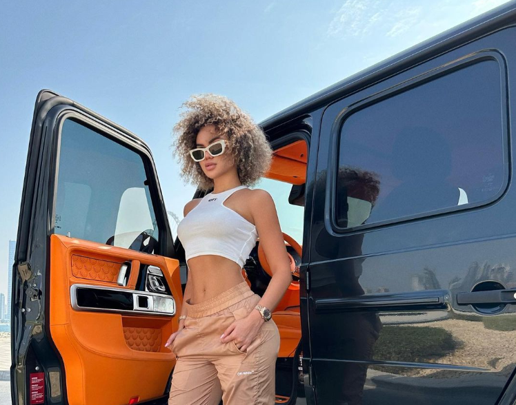 Modelja ka marrë poza atraktive pranë një veture të tipit Mercedes, në një nga modelet e reja.