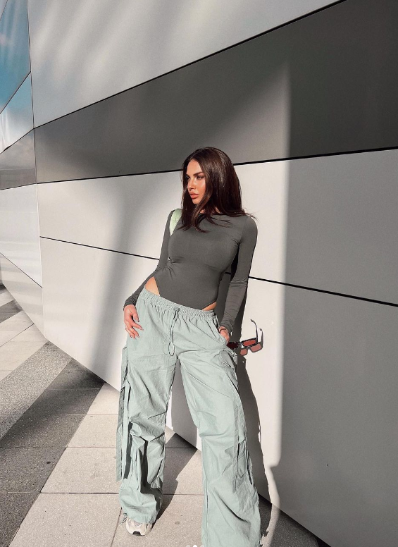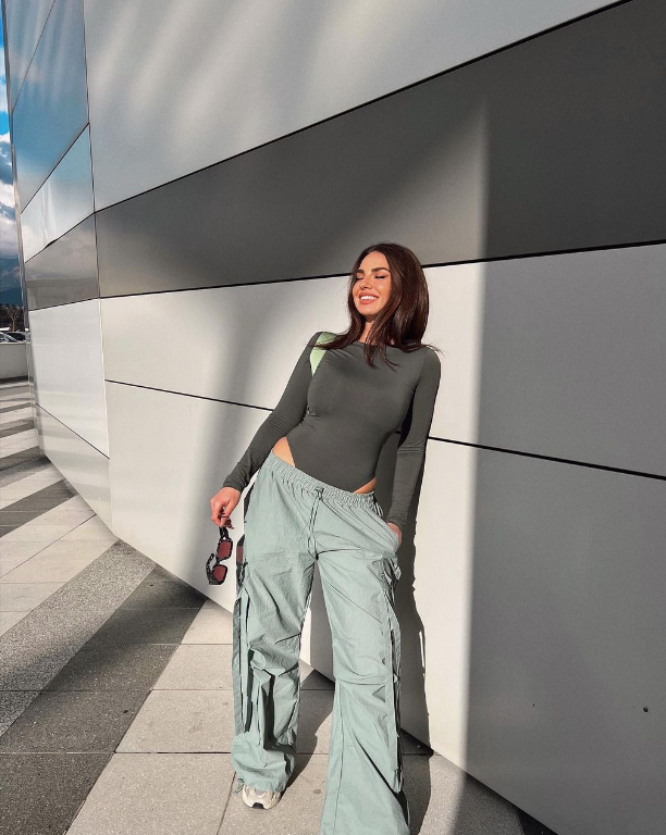 Autorja e “Më fal” kombinoi një bluzë të ngushtë për trupi me një palë pantallona të gjera me ngjyrë të ngjashme dhe një palë atletet.