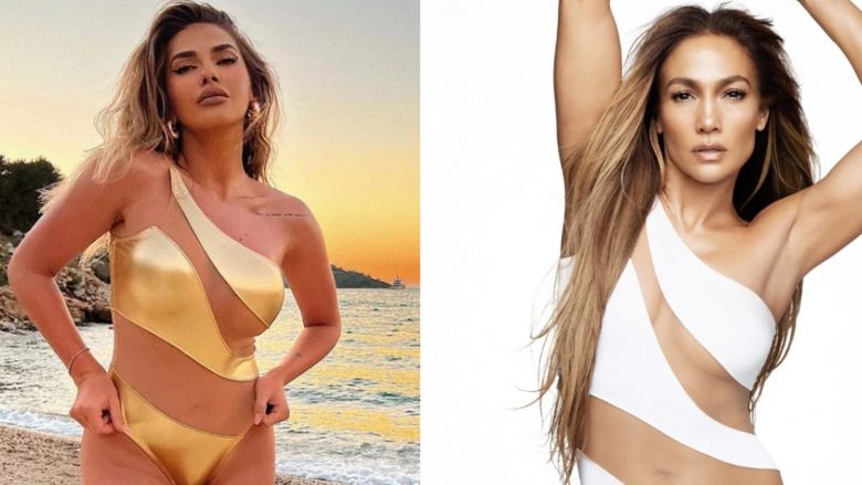 Derisa ato të këngëtares shqiptare ishin me ngjyrë ari dhe prerje të tejdukshme, artistja latine pozoi me një palë me ngjyrë të bardhë.