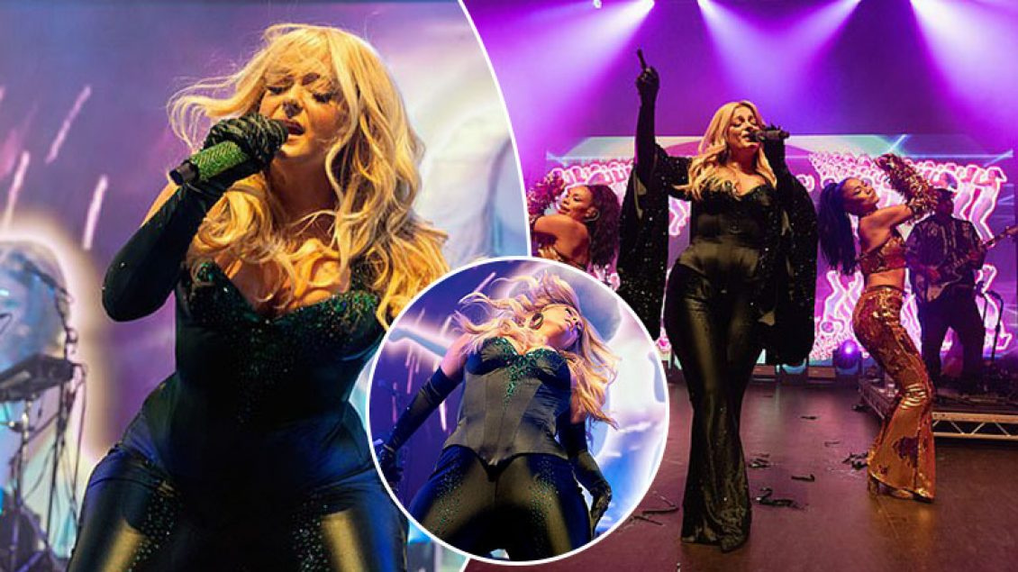 Këngëtarja 33-vjeçare theksoi të pasmet e saj të famshme e veshur me një kostum të zi me shkëlqim jeshil, teksa zhvillonte një performancë energjike në “O2 Shepherd’s Bush Empire”.