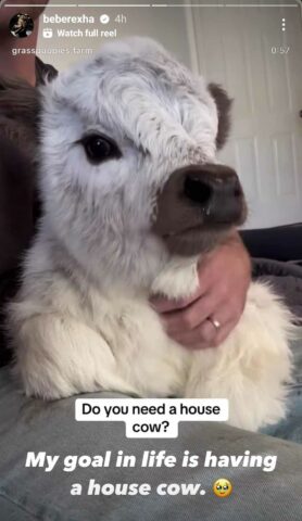 “Qëllimi im në jetë është ta kem një lopë shtëpie”, ka shkruar artistja, bashkangjitur një videoje.