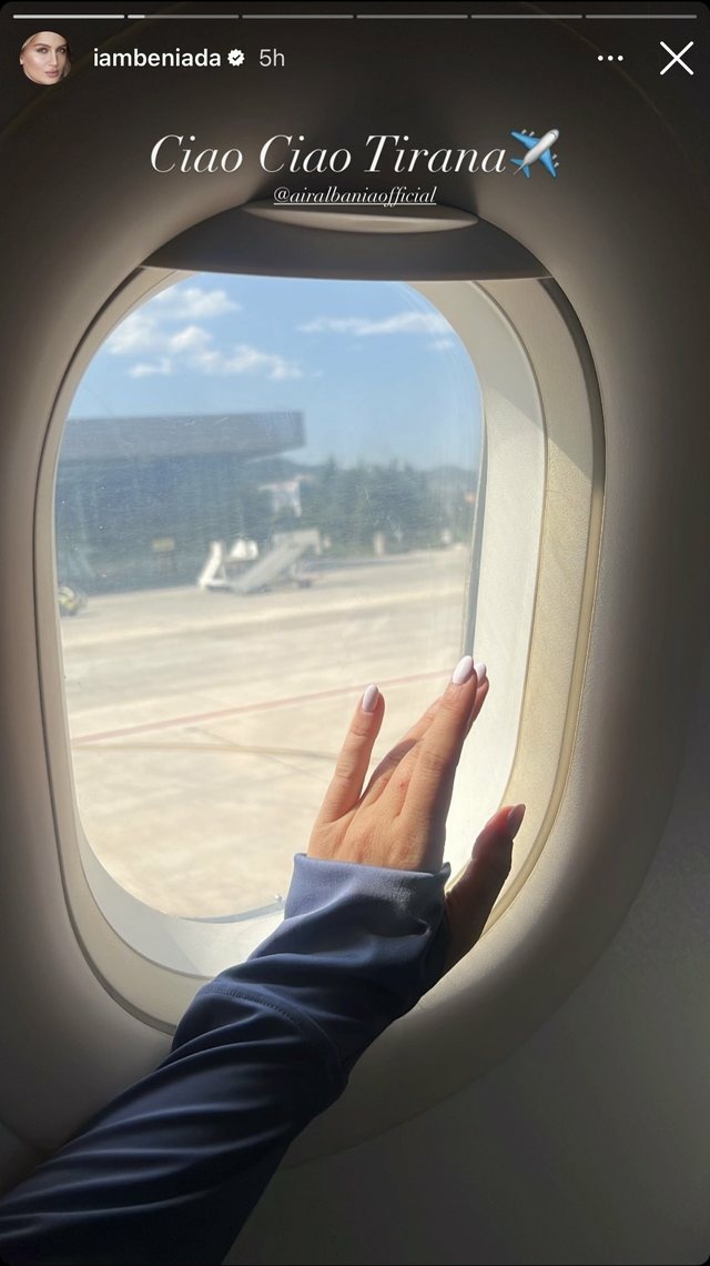 Ajo ka postuar foto teksa po niset për udhëtim dhe nga avioni shkruan “ciao ciao Tirana”.