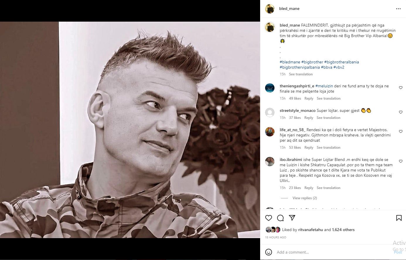 ” FALEMINDERIT, gjithkujt pa përjashtim që nga përkrahësi më i zjarrtë e deri te kritiku më i thekur në rrugëtimin tim të shkurtër por mbresëlënës në Big Brother Vip Albania!”, ka shkruar ai.
