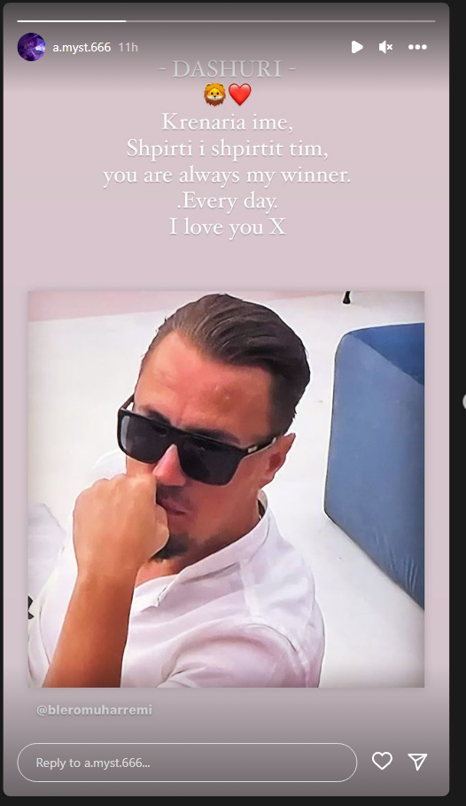 “Dashuri, krenaria ime, shpirti i shpirtit tim, ju jeni gjithmonë fituesi im, çdo ditë, Të dua”, shkroi ajo.