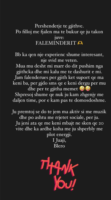 Ai ka falënderuar të gjithë për mbështetjen, për votat dhe për memet që janë