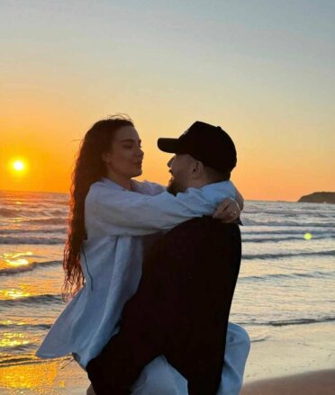 E shoqëruar nga i dashuri i saj, Donald Vishaj, ata shfaqen duke e shijuar perëndimin e diellit buzë detit.