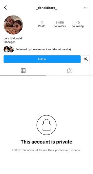 Mbrëmë u vu re se Bora Zemani ndjek një faqe fansash në Instagram, “Donald Bora”.