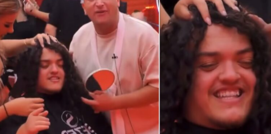 Banori shihet të ketë vënë një paruke kaçurrela teksa u transformua në kënëgtaren Rovena Stefa.