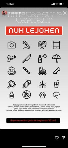 Gjatë ditës së sotme, ai ka bërë një njoftim me rëndësi në rrjetin social Instagram, duke treguar elemente të ndryshme që nuk do të lejohen gjatë koncertit.