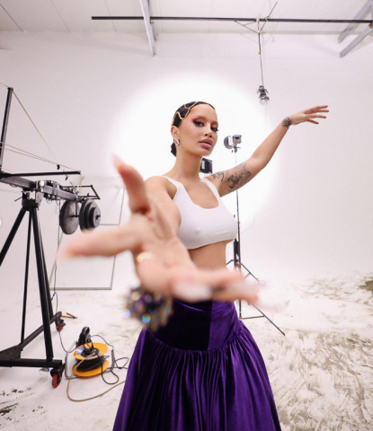 Në mbishkrimin e fotografive, ajo madje zbuloi edhe disa vargje të këngës në bashkëpunim me Albanin, e cila titullohet “Copa copa”. /arbresh.info/