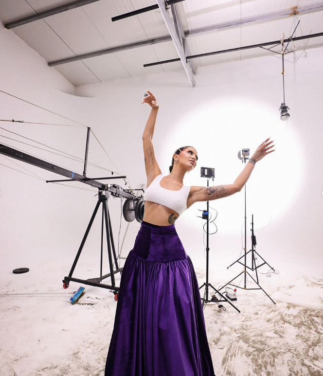 Në mbishkrimin e fotografive, ajo madje zbuloi edhe disa vargje të këngës në bashkëpunim me Albanin, e cila titullohet “Copa copa”. /arbresh.info/