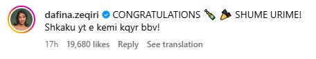 E në mes tyre ishte edhe artistja Dafina Zeqiri, e cila e uroi publikisht në postimin e tij të ndarë në rrjete sociale.