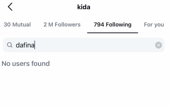 Në anën tjetër, Kida gjithashtu shihet se nuk e ka fare Zeqirin në listën e njerëzve që ndjekë.
