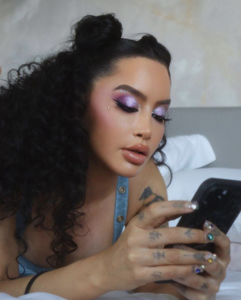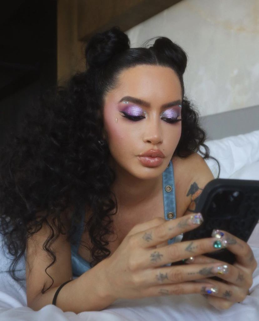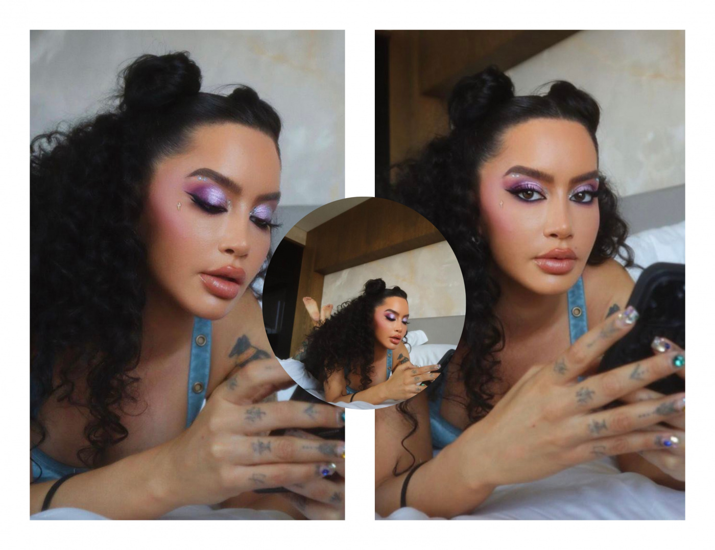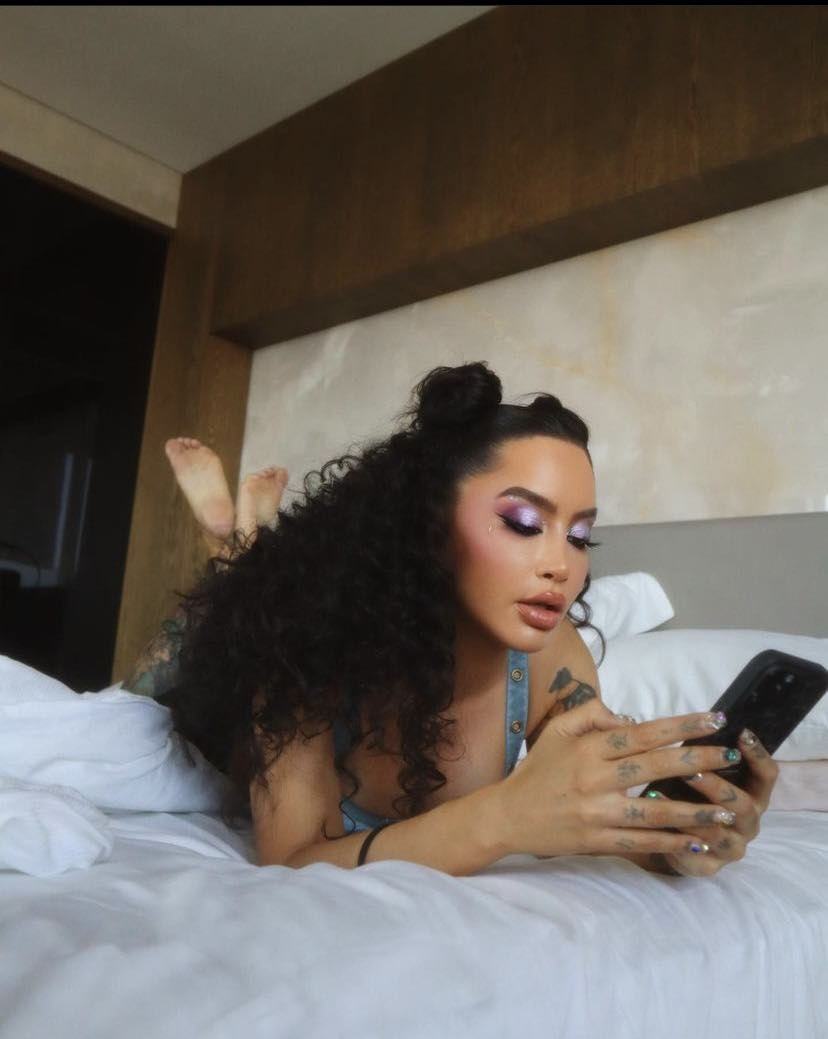 Në imazhet e fundit, Dafina shfaqet e shtrirë në shtrat, me flok kaçurrela dhe me një grim ekstravagant.