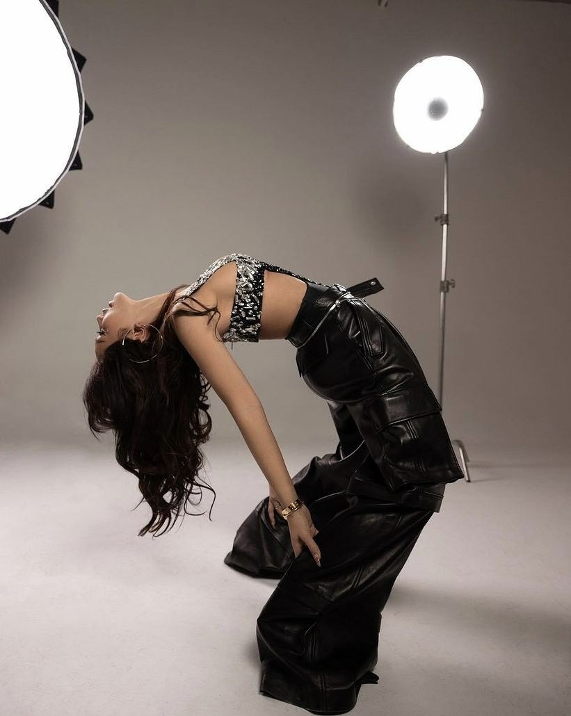 Bukuroshja, e cila është në përgatitjet e fundit të albumit të saj, shfaqet e veshur me një korse të mbuluar me gur teksa ka kombinuar me një palë pantallona të zi të lëkurës.