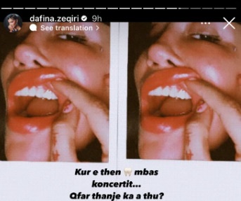 “Kur e thyen dhëmbin pas koncertit… Çfarë thënie ka, a thua?”, ka shkruar Dafina.