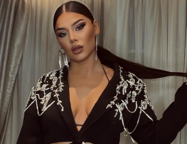 E veshur në një kostum të zi me rruaza të bardha, krijuesja e hitit “Zemër” dukej në formë të mrekullueshme.