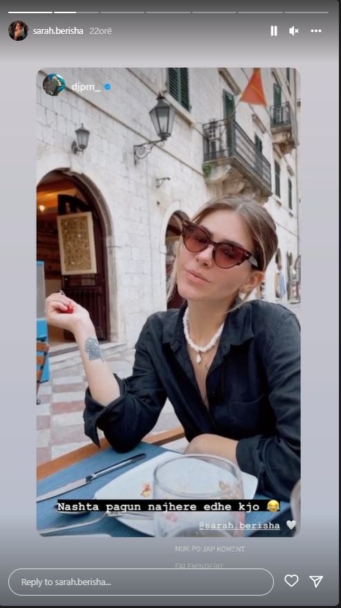 Ai ka postuar një foto të Sarës dhe ka shkruar me humor: “Nashta paguan najher edhe kjo”.