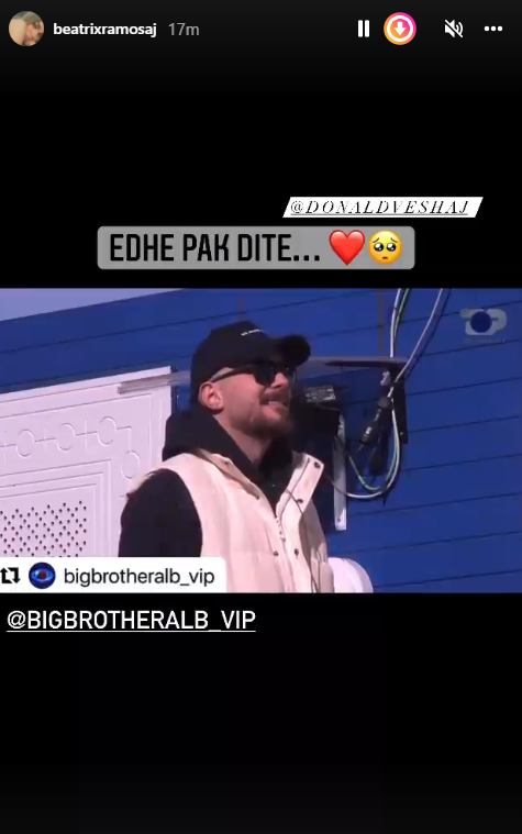 Reagimin e aktorit e ka shpërndarë në InstaStory në Instagramit të saj edhe Beatrix me mbishkrimin: Edhe pak ditë. /arbresh.info/