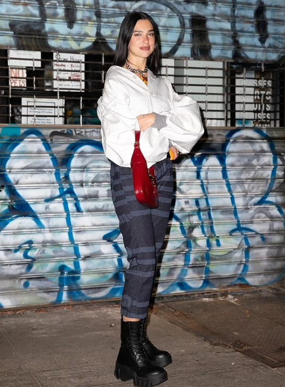 Këngëtarja, 26 vjeçe, tregoi kredencialet e saj të stilit në një këmishë të bardhë me përmasa të mëdha me një dekolte jashtë supit dhe mëngë të gjera.