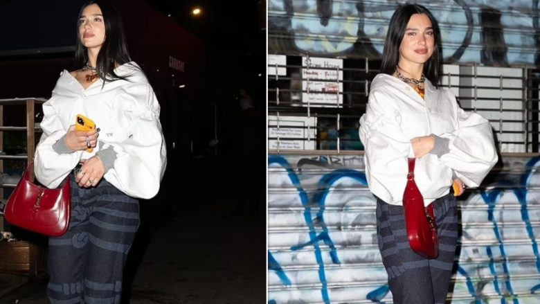Këngëtarja, 26 vjeçe, tregoi kredencialet e saj të stilit në një këmishë të bardhë me përmasa të mëdha me një dekolte jashtë supit dhe mëngë të gjera.
