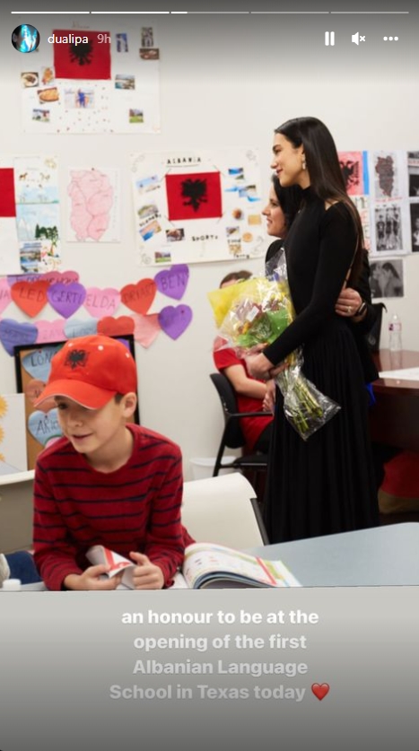“Një nder të isha pjesë e hapjes së shkollës së parë shqiptare në Texas sot”, shkroi Dua në mbishkrimin e një fotografie në InstaStory.