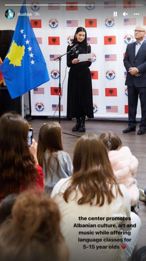 “Qendra promovon kulturën shqiptare, artin dhe muzikës derisa ofron gjuhën shqipe nga klasat 5-15 vjeç”, shkroi këngëtarja në një tjetër fotografi gjatë fjalimit të saj në inaugurim.