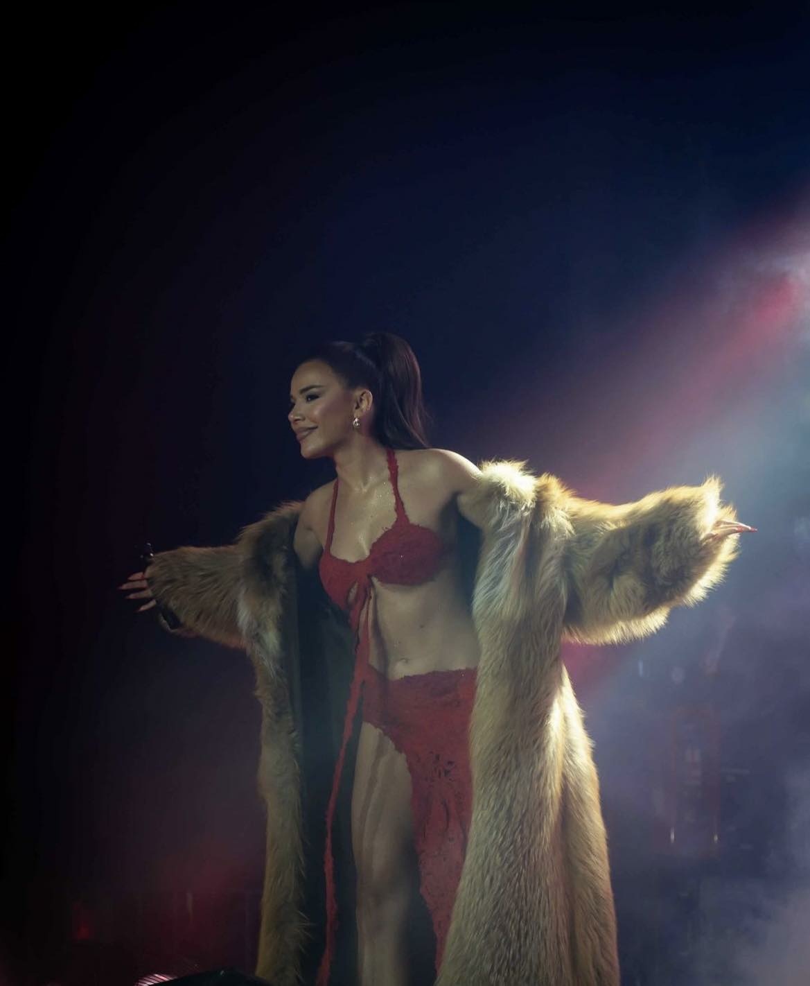 E veshur më një fustan të kuq, ku i vinte në pah format e saja fizike, për të nuk munguan komentet e mira./Arbresh.info/