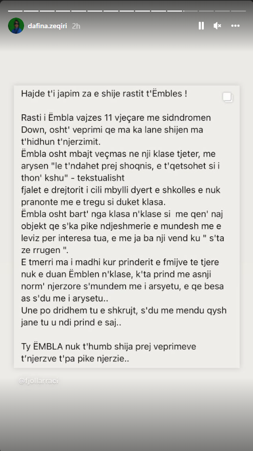 Këngëtarja Dafina Zeqiri i ka dalë në mbrojtje vajzës me Sindromë Down e quajtur Ëmbla nga Gostivari.