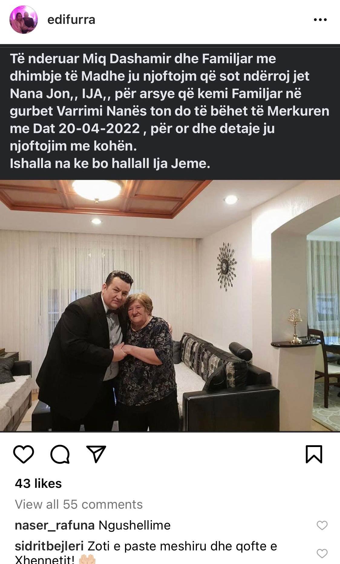 Këngëtari i mirënjohir i muzikës popullore ka përjetuar humbjen e të ëmës, personit më të dashur për të.