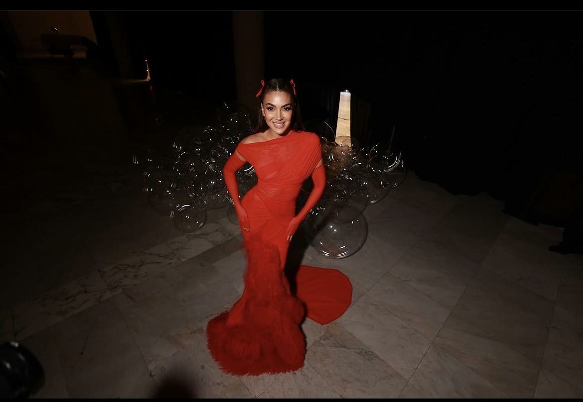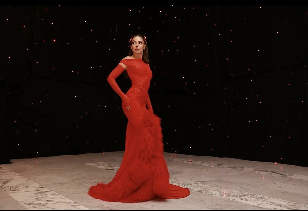E veshur me një fustan të kuq, dhe me një grim që i shkonte siç është më së mirë, Elvana shkëlqeu e tëra atë natë./Arbresh.info/