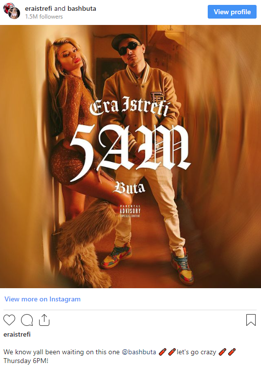 “E dimë që keni qenë duke pritur për këtë, le të çmendemi, e enjte 6pm (18:00)”, ka shkruar Era në imazhin ku shihet përkrah Butës.