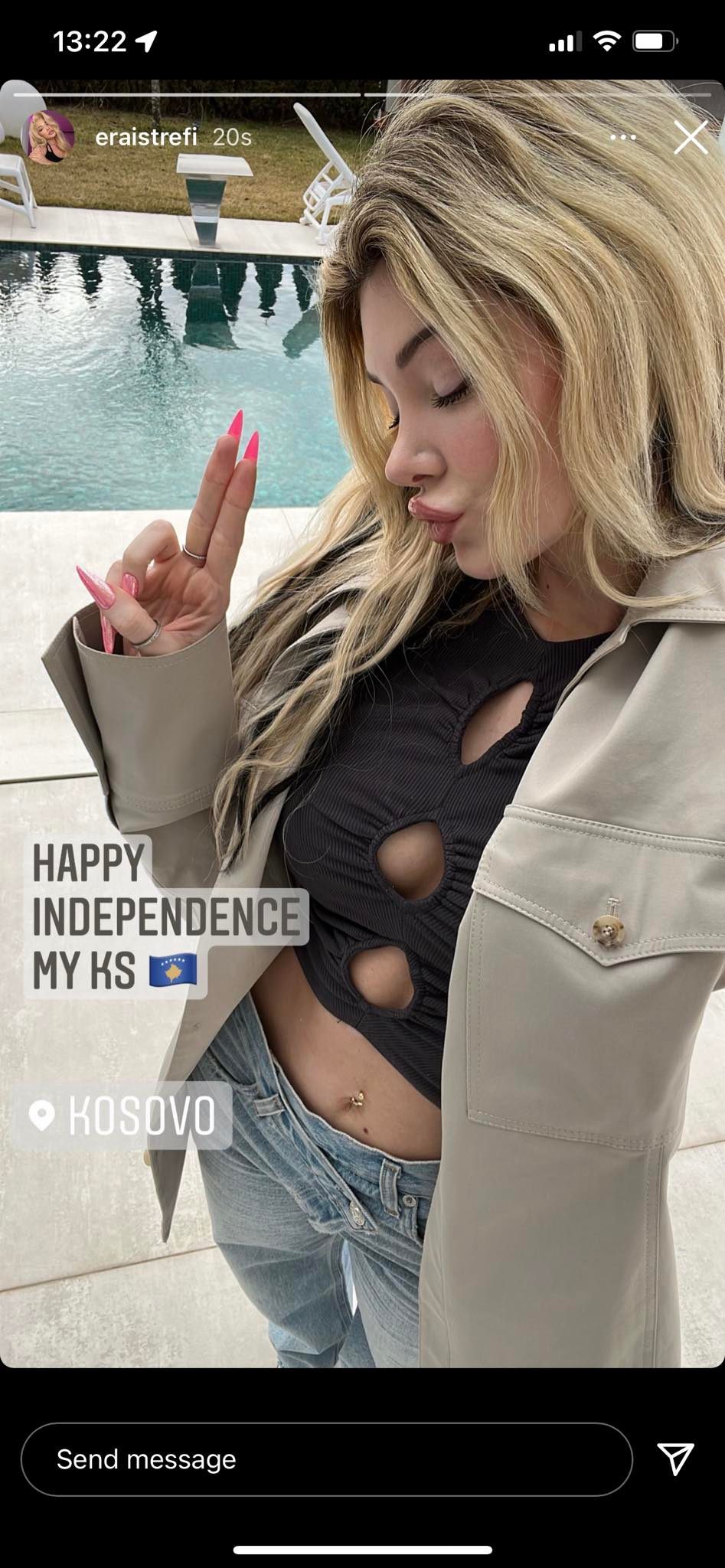 “Urime dita e pavarësisë Kosova ime”, ka shkruar Era. /arbresh.info/