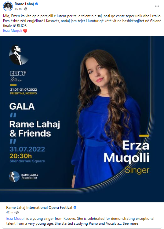 Lajmin e ka dhënë tenori i njohur kosovar, Ramë Lahaj, shkruan arbresh.info