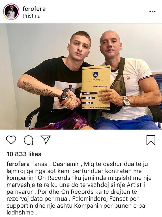 “Mirë se vjen në On Records Fero”, shkruhet krah fotos së reperit me menaxherët.
