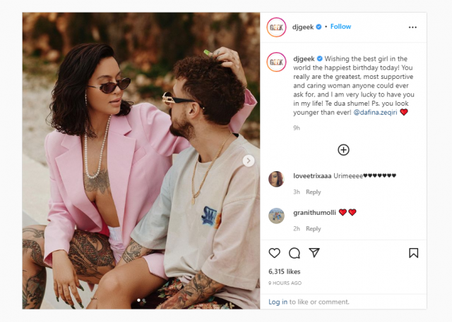 “I uroj vajzës më të mirë në botë ditëlindje më të lumtur sot! Ti je me të vërtetë e mahnitshme, më mbështetëse dhe më e kujdesshme që dikush mund të kërkojë ndonjëherë, dhe unë jam shumë me fat që të kam në jetën time”, u shpreh DJ Geek./arbresh.info/