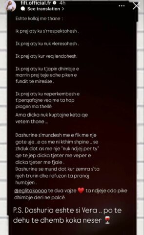 Një ndër ta është edhe këngëtarja Fifi, e cila i ka dal në mbrojtje Eglit, duke i thënë se e din se çfarë është duke përjetuar Egli në këto momente.