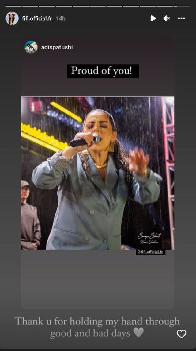 “E dashuroj muzikën akoma ma shumë kur këndoj për njerëzit që ma duan muzikën”, ka shkruar Fifi. Adisi ka publikuar një foto nga performanca në shi ndërsa ka shkruar se është krenar për të. Kujtojmë që Adisi dhe Fifi u njohën pas daljes së kësaj të fundit nga shtëpia e famshme.