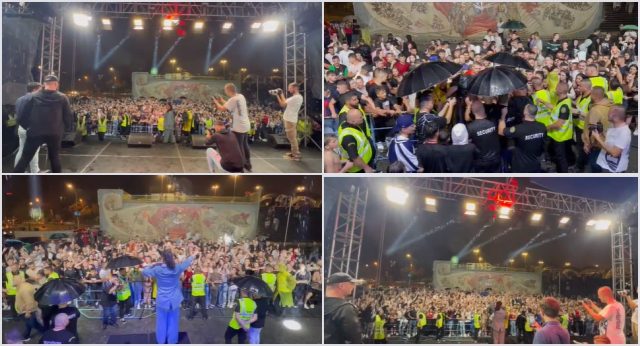 Këngëtarja ja shpërndarë një fotografi në Instagram, ndërsa në rrjetet sociale janë publikuar edhe video të shumta, ku ajo shfaqet duke performuar në shi.