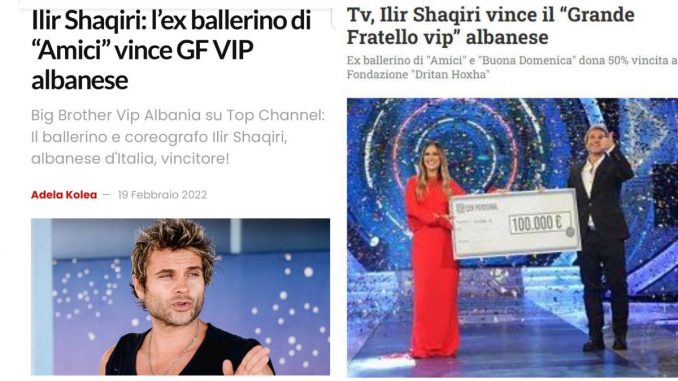 Triumfimi i balerinit Ilir Shaqiri ka tërhequr vëmendjen edhe të mediave italiane. Edicioni i parë i “Big Brother Vip Albania” përfundoi të premten pas katër muajsh spektakël televiziv, ku mori pjesë edhe Ilir Shaqiri, i cili arriti të fitojë dhe çmimin e madh.